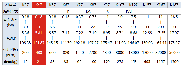 K系列減速機,結(jié)合國際技術(shù)要求制造,具有很高的科技含量,節(jié)省空間,可靠耐用, 承受過載能力高,功率可達(dá)200Kw,能耗低,性能優(yōu)越,減速機效率高達(dá)95%以上,振動小,噪音低,節(jié)能高,選用優(yōu)質(zhì)鍛鋼材料,鋼性躊鐵箱體,齒輪表面 經(jīng)過滲碳淬火,經(jīng)過精密加工,構(gòu)成了斜齒輪、傘齒輪,錐齒輪傳動總成的減速機。
