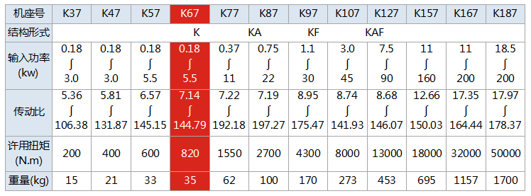 K系列減速機,結(jié)合國際技術(shù)要求制造,具有很高的科技含量,節(jié)省空間,可靠耐用, 承受過載能力高,功率可達200Kw,能耗低,性能優(yōu)越,減速機效率高達95%以上,振動小,噪音低,節(jié)能高,選用優(yōu)質(zhì)鍛鋼材料,鋼性躊鐵箱體,齒輪表面 經(jīng)過滲碳淬火,經(jīng)過精密加工,構(gòu)成了斜齒輪、傘齒輪,錐齒輪傳動總成的減速機。