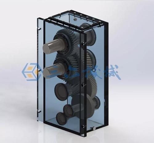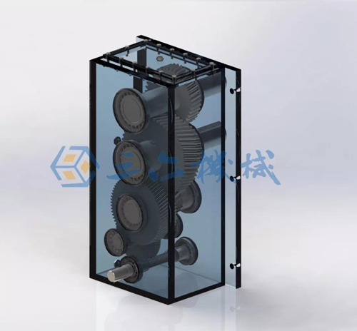 本款立式安裝的雙輸出減速機,是為成都一家企業(yè)定制的非標準硬齒面雙輸出軸減速機。
